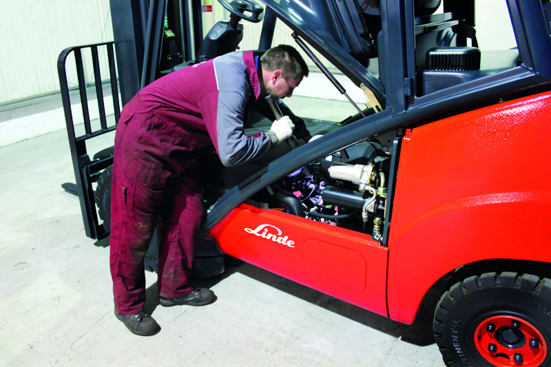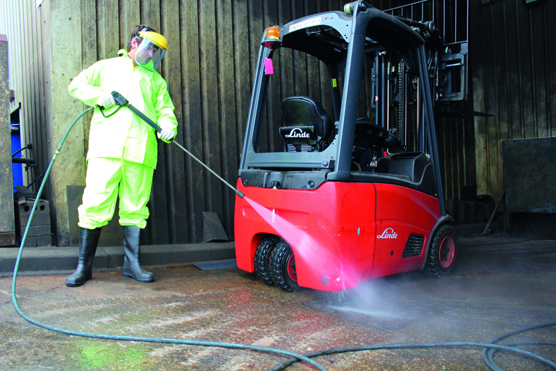 每輛叉車在檢驗前都要經過高壓清洗,除掉殘留的污垢和油。之后準備進行更詳細的檢驗。
